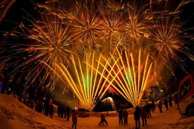 도야의 겨울을 물들인다『음악과 불꽃놀이의 콜라보레이션』